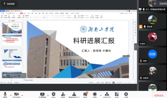 随后,团队老师依次汇报科研工作进展和本年度科研项目申请、论文撰写以及大学生创新创业活动指导工作。谭骏老师表达了从事航空安全以及核动力航母安全相关研究的意愿以及准备指导大学生进行创新性活动。郑艳芳老师汇报了在研科研项目的进展情况,表示将积极申报衡阳市社科项目以及省教育厅一般项目,交流拟定课题及研究内容,同时表示将指导大学生进行创新性项目申请。陈雪锋博士汇报了他和牛美玲老师所指导的3组本科生进行科研工作的进展情况,提出了3个实验项目及具体的实验研究方案,并表示会积极进行科学研究项目申报并指导本科生进行科研工作。左华丽老师汇报其在研教育厅一般科研项目的进展情况,准备申报衡阳市社科项目并汇报了拟定课题名称及研究内容,表示会指导学生从事创新性项目申请。何佳媛老师交流了在研项目的进行情况,准备今年主要聚焦于去年立项3个课题的研究。何婷老师汇报了调查问卷设计进展情况,正在进一步调整,拟于近期进行发放,同时表示今年准备申报衡阳市社科项目并交流了拟将申报课题及研究内容,准备指导学生申请互联网+项目。甘浪老师汇报了其工作负荷相关文献阅读情况。牛美玲老师汇报了其省教育厅一般科研项目的结题进展情况,并表示将积极准备项目申报。易玉枚老师汇报了其疲劳驾驶相关文献阅读情况。周淑仪老师汇报了其指导大学生互联网+项目申请以及物流设计大赛方面的工作情况。在团队老师汇报的过程中,易灿南老师就团队老师拟定的课题名称、研究内容和方法进行了交流。随后,易灿南老师也就自己的科研工作进展情况进行了汇报,谈了今年工作计划。