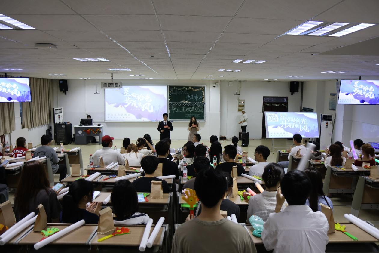 5月27日晚,安全与管理工程学院于5601举行以星海拾光,步履乘风”为主题的2025届毕业生欢送晚会。学院党委副书记周丹、学工办主任兼分团委书记蒋昂松、全体辅导员、毕业生代表和学生代表参加了本次晚会