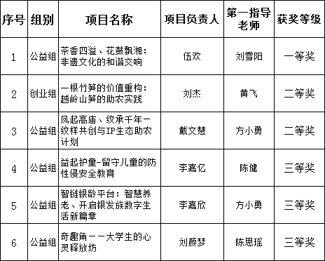 202551519:00,我院16参赛团队安工5601举行了2025大学生创新大赛校内选拔赛。经学生路演,专家组评选,确定高教主赛道《“衡韵雅香”——衡阳特色文化香膏》等三个项目获一等奖,《智护安控——基于AI+的人员状态监测系统》等个项目获二等奖,《银龄哨兵——用AI守护老人安全的跌倒预警系统》等四个项目获三等奖;确定青红主赛道《茶香四溢、花鼓飘湘:非遗文化的和谐交响》项目获一等奖,《一根竹笋的价值重构:越岭山笋的助农实践等两个项目获二等奖,《益起护童-留守儿童的防性侵安全教育等三个项目获三等奖,特此公示。