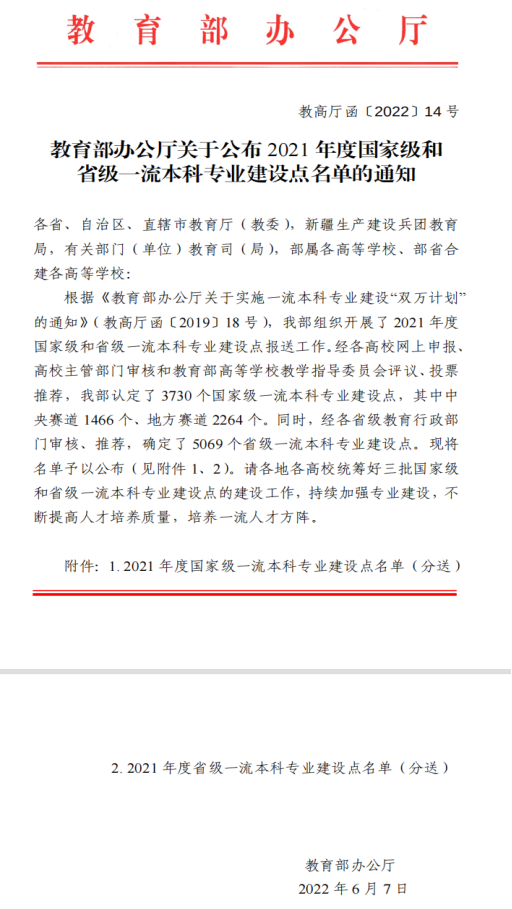 为深入落实全国教育大会精神,贯彻落实新时代全国高校本科教育工作会议精神,提高高校人才培养质量,实现高等教育内涵式发展,教育部从2019年4月开始实施一流本科专业建设“双万计划”,将在2019-2021年建设一万个左右国家级一流本科专业点和一万个左右省级一流本科专业点。2021年教育认定了 3730 个国家级一流本科专业建设点,其中中央赛道 1466 个、地方赛道 2264 个