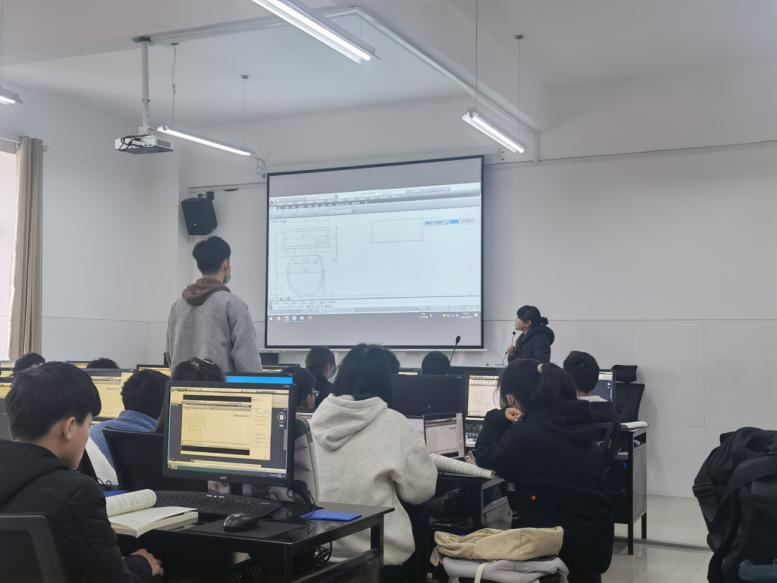 324下午,春雷惊蛰,雨意绵绵,安全与管理工程学院5305(实验室)座无虚席,工业工程教研室主任郑艳芳老师《工业工程CAD》教学公开课正在进行。