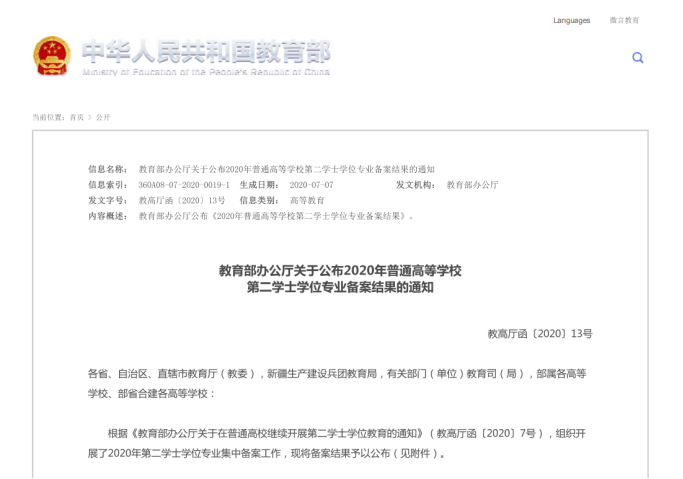 为给本科毕业生创造更多再学习的机会,增强学生就业创业能力,安全工程专业教研室认真贯彻落实《教育部办公厅关于在普通高校继续开展第二学士学位教育的通知》精神,积极申报第二学士学位专业。日前,教育部办公厅下发《教育部办公厅关于公布2020年普通高等学校第二学士学位专业备案结果的通知》(教高厅函【202013号),安全工程专业获批开展第二学士学位教育。