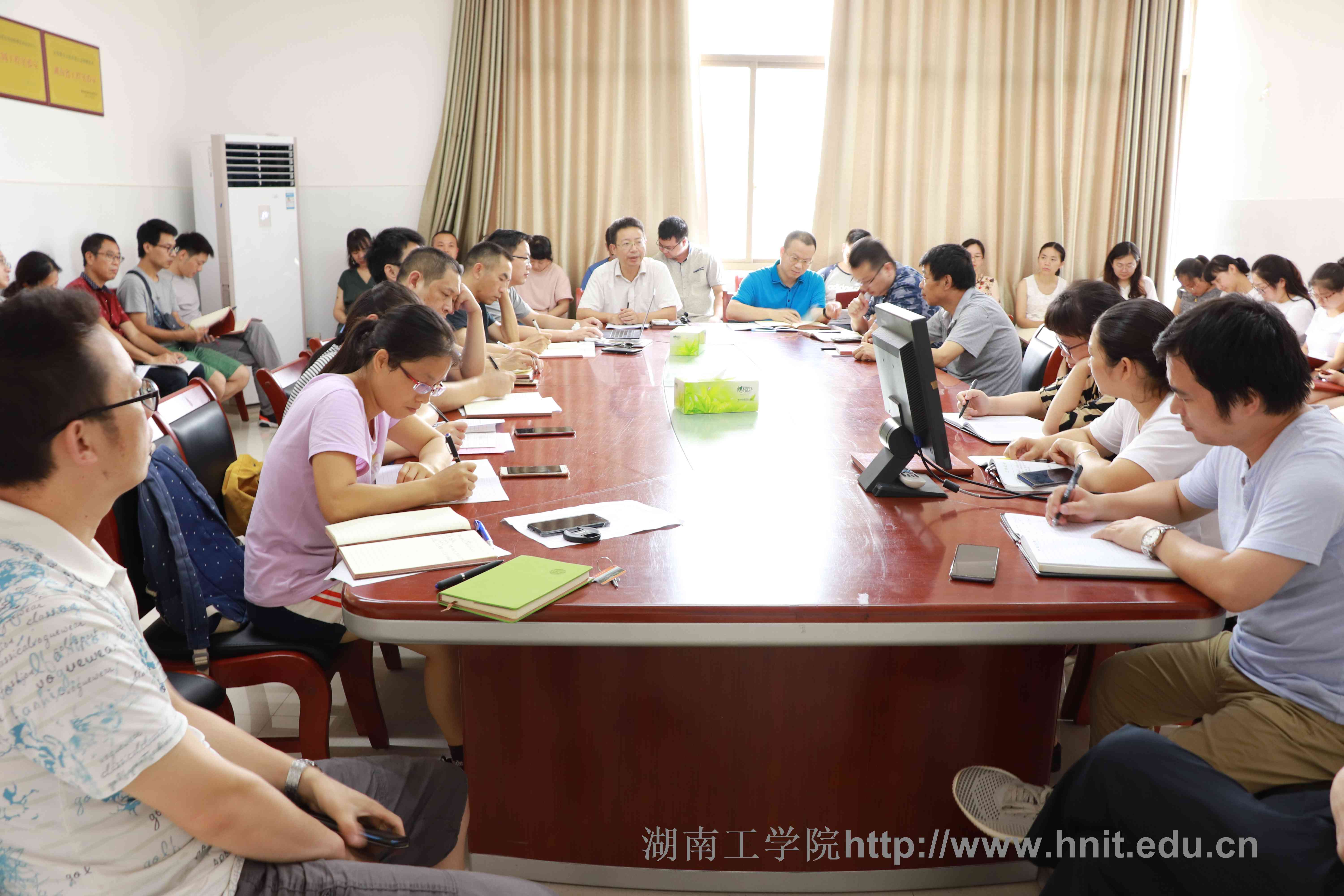 首先廖可兵院长传达了学校关于本科教学工作审核评估工作的重要精神,要求全体成员思想上要高度认识。胡鸿副院长组织大家认真学习《安工学院本科教学工作审核评估工作实施方案》等审核评估相关材料,做到深刻领会审核评估的精神实质、审核项目、审核要素和审核要点的指标内涵。胡鸿副院长根据学校审核评估工作方案,结合我院实际情况,就我院本科教学审核评估工作进行细致部署,明确评建工作组相关人员的任务分工和工作进度,要求各负责人认真落实完成。