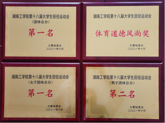 我院运动健儿、啦啦队、工作人员等以良好的精神面貌获得了校组委会的高度肯定,被授予“体育道德风尚奖”。