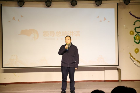 节目结束后,陈健进行了总结讲话。他对同学们的精彩表现进行了高度评价和赞扬,对为筹备本次晚会辛勤付出的师生表示感谢。他强调,作为新时代的大学生,要接好历史的接力棒,以史为鉴,开创未来。临近期末,他对我院学子提出了三点希望和要求:一是要增强诚信意识,认真复习,诚信应考;二是要增强纪律意识,做好疫情防控;三是要增强安全意识,做好安全防范。最后,他向全体师生表达了美好的元旦祝福。