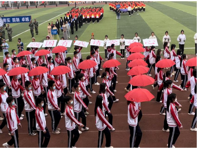 在开幕式的现场,我院方阵队迈着整齐的步伐,雄赳赳,气昂昂地走过主席台。“顽强拼搏,超越极限,青春向党,强国有我”的口号彰显了安工学子朝气蓬勃、拼搏向上的精神毅力。