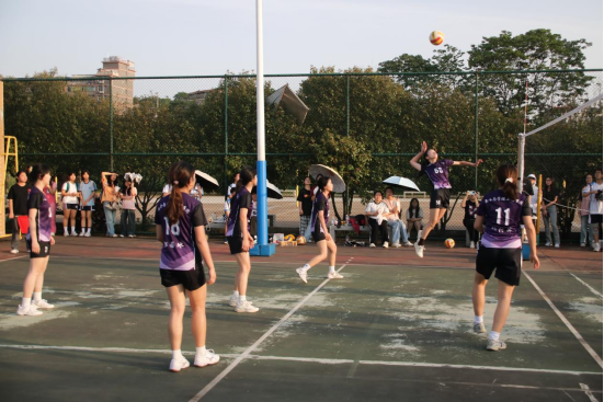 5月9日下午,女排决赛在同一场地打响。面对实力强劲的化环学院女排,我院女排姑娘们沉着应战,以灵活的战术调整和出色的临场发挥,经过四局激烈较量,最终以3:1力克对手,勇夺冠军!此役中,女排队员们以坚韧的防守和犀利的进攻征服全场,不仅彰显了我院女排的实力,也体现了我院学子的青春活力