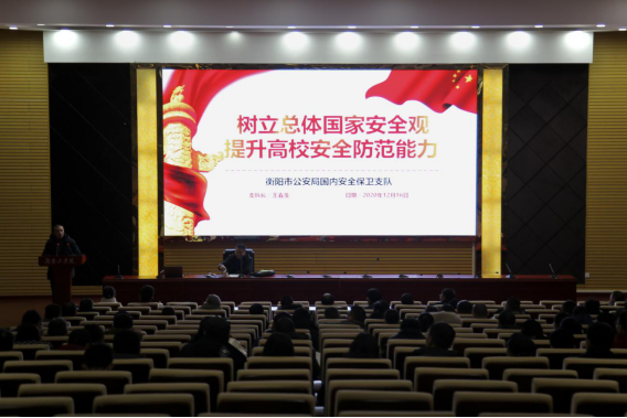 为提高学校教职工的国家安全意识,增强维护国家安全的责任感、使命感,12月16日下午,保卫处邀请衡阳市公安局国保支队支队长王春生在英国上市公司官网365500人报告厅举行了一场讲座。讲座面向全体处级、科级干部,全体辅导员,马克思主义学院全体教师,主题为“树立总体国家安全观,提升高校安全防范能力”为主题的国家安全教育讲座,讲座由保卫处副处长张帆主持。