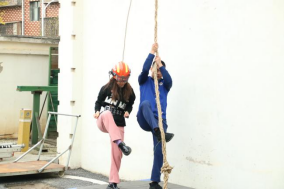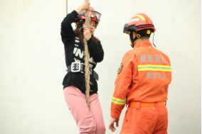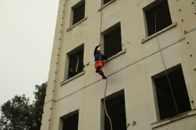 其次,同学们还进行了攀爬楼房的实践活动。在消防员的指导下系好安全带,拿着绳索,沿着楼房的外墙向上攀升,亲身体验到了消防队员在执行高空救援任务时所面临的困难和挑战。亲自感受到了高空的风力和重力,以及攀爬的技巧和危险,更体会到了消防员的勇气和毅力,以及团队合作的重要性。