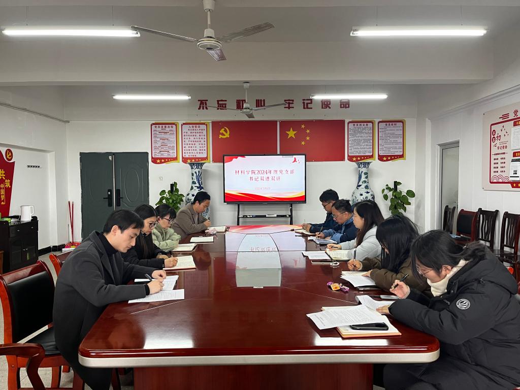 3月11日,学院党委在材化楼1401会议室召开支部书记“双述双评”会议。会议由党委书记刘赢时主持,党委副书记李前奔、全体支部书记参会。