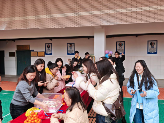 活动以"甜蜜"为主题,现场布置浪漫温馨,鲜花与甜品交相辉映。学院为每位女教职工准备了芬芳的节日鲜花,传递诚挚祝福;甜品区陈列着精致蛋糕、马卡龙等甜点,让女神们在舌尖享受甜蜜时光。活动还设置了趣味互动环节——"幸运盲盒",参与者通过随机抽取盲盒收获惊喜礼品。参与活动的女教师们纷纷表示,活动既贴心又有趣,深切感受到学院的关怀与尊重。