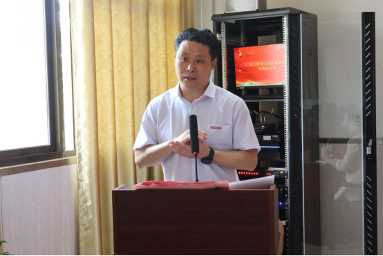罗建新讲话,祝贺获得三和精化助学奖学金的同学们。罗建新希望同学们骄而不燥、沉而不傲、脚踏实地、实事求是,刻苦勤奋,严格自律;要求同学们不要随波逐流,被浪涛淹没,要时时刻刻保持自律,从浪涛中脱颖而出;期待同学们绽放出青春的色彩,接过时代的接力棒,做感恩的传递者,努力报效祖国、回馈社会。