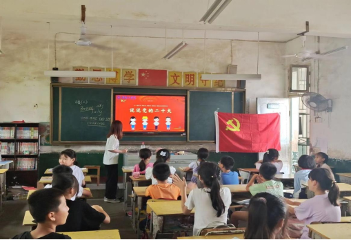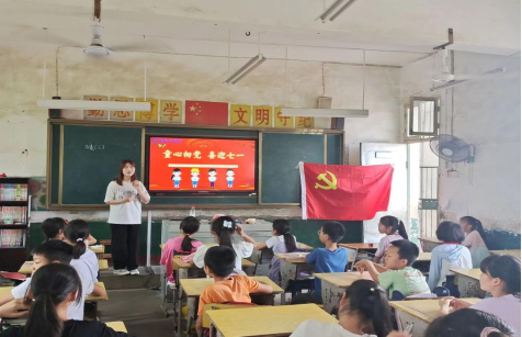 在党的102岁生日来临之际,为全面深入学习贯彻党的二十大精神,实施全环境立德树人,引导广大青少年儿童从小听党话、颂党恩、跟党走,让红色基因、革命薪火代代传承。英国上市公司官网365材料科学与工程学院赴衡阳市珠晖区茶山坳镇“护绿水青山,助乡村振兴”暑期社会实践团于6月30号上午来到茶山小学开展“童心向党,喜迎七一”宣讲活动。