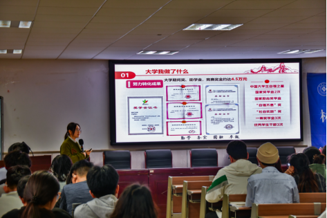 黄依卓老师分别介绍了宣讲成员的学术科研、社会实践、志愿服务等方面都取得优异成绩。她希望学院的团学干部们能以“身边榜样”为标准,认真查找自身不足,努力缩小与先进典型的差距,做到“学有目标,赶有对象”。