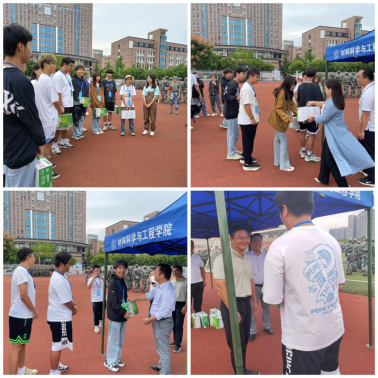随后,院领导为军训新生和班助送上牛奶,传递学院关心关怀,鼓舞新生军训士气。
