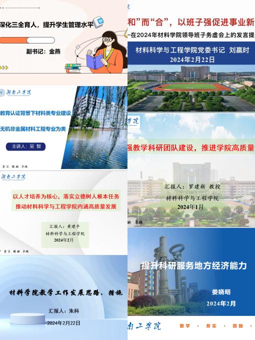2月22日,材料科学与工程学院在1401会议室召开2024年工作务虚会。全体院领导,三办主任,教研室、实验室正副主任,党支部书记参加会议,会议由党委书记刘赢时主持。