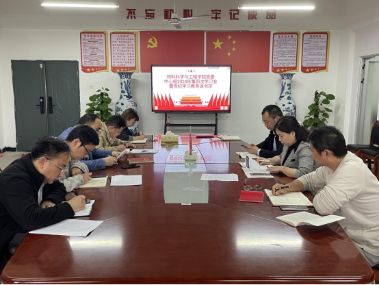 430日下午,材料科学与工程学院党委理论学习中心组在1401会议室举行2024年第四次集中学习暨党纪学习教育读书班,党委书记刘赢时主持会议,党委理论学习中心组成员参加。