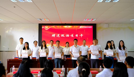 学院为正式党员代表颁发“政治生日卡”,赠送“政治生日礼物”:一本《中国共产党纪律处分条例》,一枚党员徽章,一个学习记录本,一支钢笔,这份礼物既是关怀关切,也是提醒全体党员要以尺墨常伴警醒,让纪律红线刻心间。
