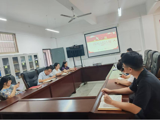 党课:支部书记伦英慧讲党课《四风六级八规》,严守纪律红线、弘扬优良作风,教师党员从自身做起,于细微处见精神,作风建设永远在路上。