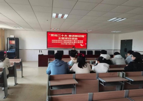 为宣讲党的二十大精神、党的创新理论和学校的创新实践,材料科学与工程学院教工第三党支部与学生第三党支部于3月21日在1301结对开展“贯彻党的二十大,奋进新征程”讲党课主题党日活动。