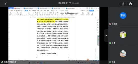 党员熊鑫同志对学习资料进行了梳理,对学习内容的核心观点进行了归纳,采用提纲挈领和“画重点”的讲授方法进行了领学。他介绍,坚持以习近平法治思想为引领,全面推进依法治国,奋力开启新时代法治中国建设新征程,必须坚定不移地坚持中国特色社会主义法治道路、法治理论、法治体系、法治文化“四位一体”,毫不动摇地坚定中国特色社会主义法治道路自信、法治理论自信、法治体系自信和法治文化自信。此外,深入研究“浦江经验”、 “晋江经验”这一重大治理启示,不仅对推动干部下访听民声、消民怨、解民忧具有直接意义,而且对做好调查研究、密切干群关系、提升治理能力、改进工作作风等具有深远现实意义。