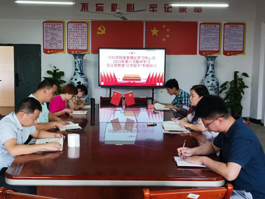 8月23日上午,材料科学与工程学院党委理论学习中心组在1401会议室举行2023年第八次集中学习暨主题教育“以学促干”“树立正确政绩观”专题研讨,党委书记刘赢时主持学习,党委理论学习中心组成员参加。