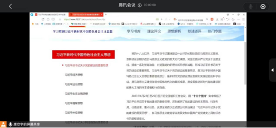 为进一步加强理论学习,推动理论学习走深走实。2023年8月25日上午,材料科学与工程学院学生第二党支部在腾讯会议开展学习《习近平总书记关于党的建设重要思想》《习近平总书记关于党风廉政建设和反腐败斗争论述》《论新时代中国共产党自我革命》文件的主题党日活动,会议由党支部书记邓佩然主持。