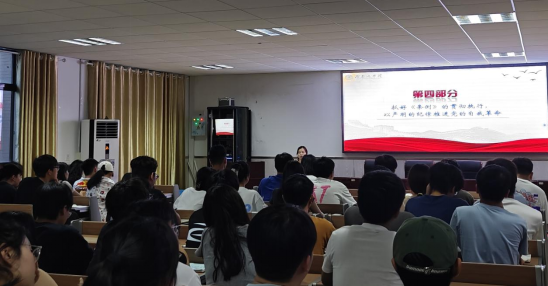 刘赢时以《中国共产党纪律处分条例》为学习内容,深入了解《条例》修订历史沿革、深刻认识修订《条例》的重要意义、准确把握《条例》修订的主旨要义和做好《条例》的贯彻执行,以严明的纪律推进党的自我革命个方面进行详细解读,原原本本、逐章逐条进行辅导领学,并结合学生管理工作,重点讲解了有关六大纪律处分的相关条款