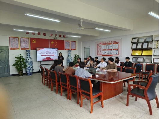 学习《中国共产党纪律处分条例》(以下简称《条例》):学生党员谭柳颖讲党课,与会师生党员坚持原原本本、逐章逐条学习《条例》。学习研讨环节,伦英慧、赵江平、胡顺薪等党员分别围绕“六项纪律”中的组织纪律和廉洁纪律开展交流研讨,以“一人讲学、全体共学”的模式,使党纪入脑入心入行。
