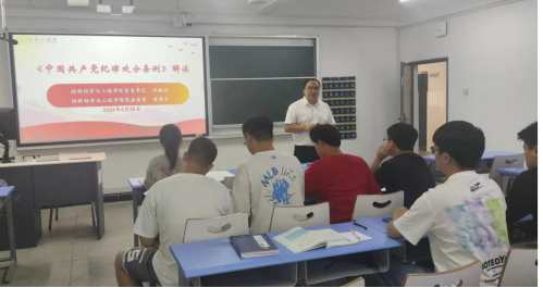 为进一步增强党员学党纪、知党纪、明党纪、守党纪”的意识,626下午,材料科学与工程学院组织全体学生党员在1404开展《中国共产党纪律处分条例》专题学习研讨暨“一月一课一片一实践”主题党日活动