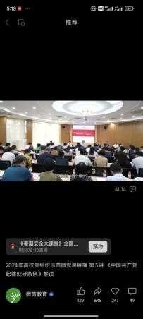 观看微视频:全体支部党员观看了高校党组织示范微党课<中国共产党纪律处分条例>解读》第三讲,帮助党员们明确纪律的重要性,理解其深远意义。其强调,学习、知晓并遵守党纪是每一名党员应尽的责任,只有这样,我们才能在实际行动上做到学纪、知纪、明纪、守纪,从而推动党的建设不断向前发展。