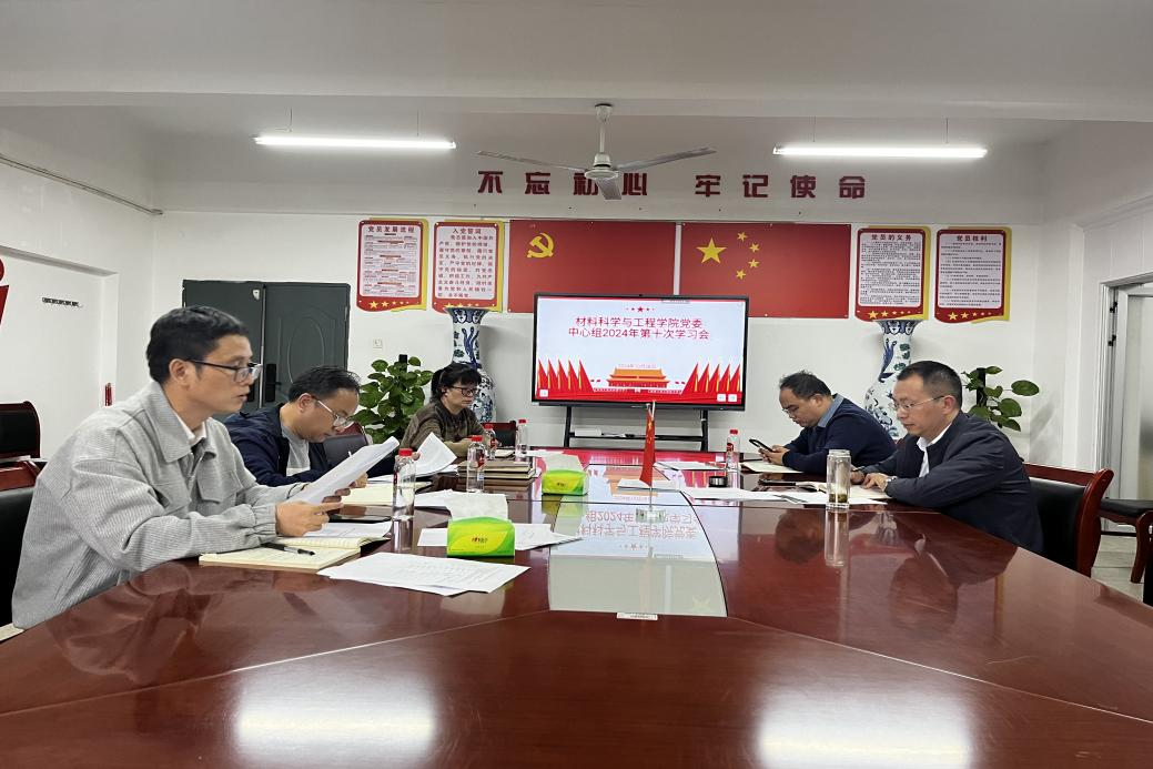 1028午,材料科学与工程学院党委理论学习中心组在1401会议室举行2024年第次集中学习,院长罗建新主持会议,党委理论学习中心组成员参加。