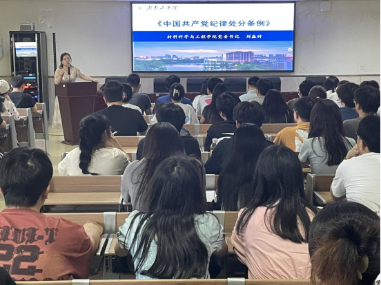 举行一次专题党课。2024529日,学院党委书记刘赢时在材化楼1301报告厅给全体毕业生党员讲授《中国共产党纪律处分条例》专题党课。围绕《条例》修订的背景意义、条例内容、实际要求等方面师生共学。通过纪律党课教育毕业生时刻警醒自己,在人生道路上始终做到心有所畏、言有所戒、行有所止,在奋斗征程中以廉洁之我成就青春梦想。