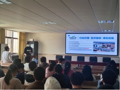 福建环洋新材料有限公司人事陈斯通过PPT对该公司就业地点、上班时间、福利待遇、岗位晋升体系、薪资构成等进行了详细的介绍。随后回答了在场毕业生提出的问题。
