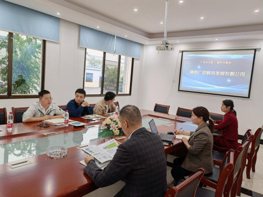 在湖南广信科技发展有限公司,该公司总经理颜永杰对副院长吴智一行的到访表示热烈欢迎。座谈会上,双方就科学研究、项目申报、实习就业、人才培养等方面的广阔合作前景进行了探讨。