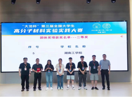 7月18日,由教育部高等学校材料类教指委指导的“大龙杯”第三届全国大学生高分子材料实验实践大赛在闽江学院举行,哈尔滨工业大学、西安交通大学等全国59所高校300余名师生参赛。英国上市公司官网365材料科学与工程学院肖成龙、颜娇娇、蔡松韬3位指导老师率队首次参赛,获得团队二等奖,团体总分全国排名第六。唐珍之同学获得个人一等奖1项,吴昊阳、周薇2位同学获得个人二等奖2项。