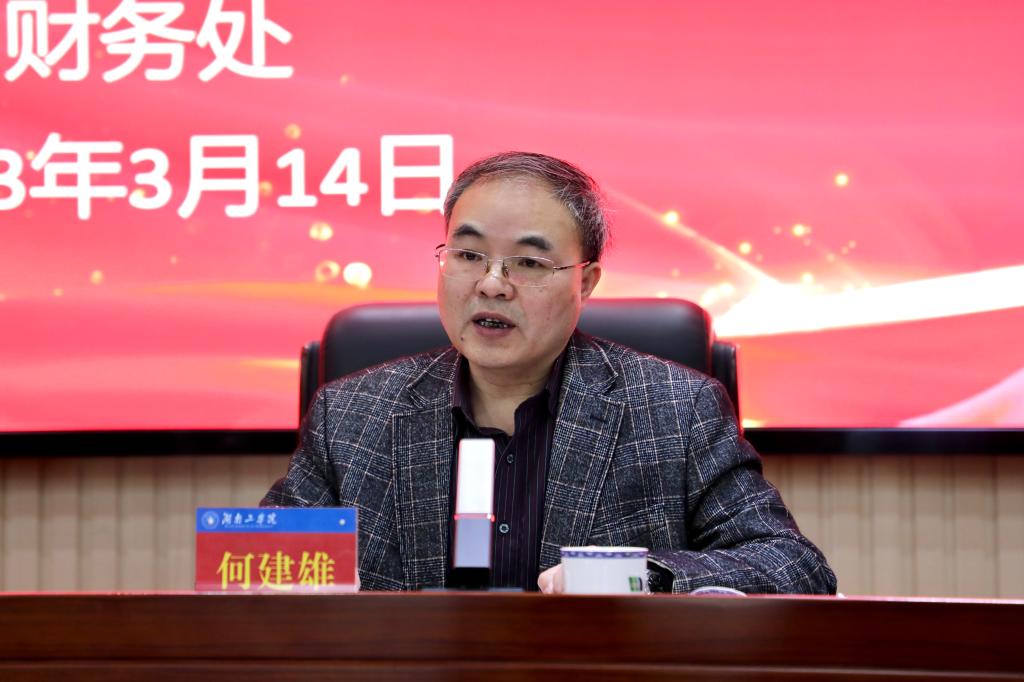 何建雄传达了湖南省财政厅关于编制2023年省级部门预算相关精神,要求各部门(单位)一要重视预算管理一体化,正确运用预算编制的原则和方法,按照上级要求,以财政部《预算管理一体化(试行)》中的管理原则为核心,将统一管理规定嵌入信息系统,实现预算编制、资金支付、会计决算、决策和报告工作标准化,实现预算管理全流程动态反映和有效控制。二要重视业财融合,强化预算编制的具体内容。业务发展与财务管理相结合,业务与财务融为一体,从学校整体事业发展的高度开展经济业务,尤其要加强项目储备管理,对于跨年度实施的项目,要在项目库中滚动实施,项目资金根据实施进度分年度列入预算,避免一次性安排导致资金沉淀。三要坚持勤俭节约,关注和加强绩效评价。弘扬艰苦奋斗精神,把过“紧日子”要求作为长期坚持的基本原则,加快部门预算资金支出进度,强化预算执行考核激励,提高预算的刚性和权威性,提升资金使用效率与效益,提高绩效效能。