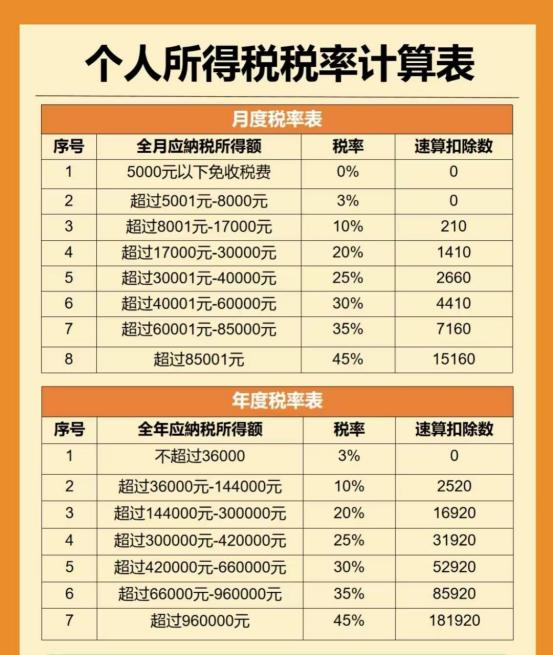 附:个人所得税税率计算表
