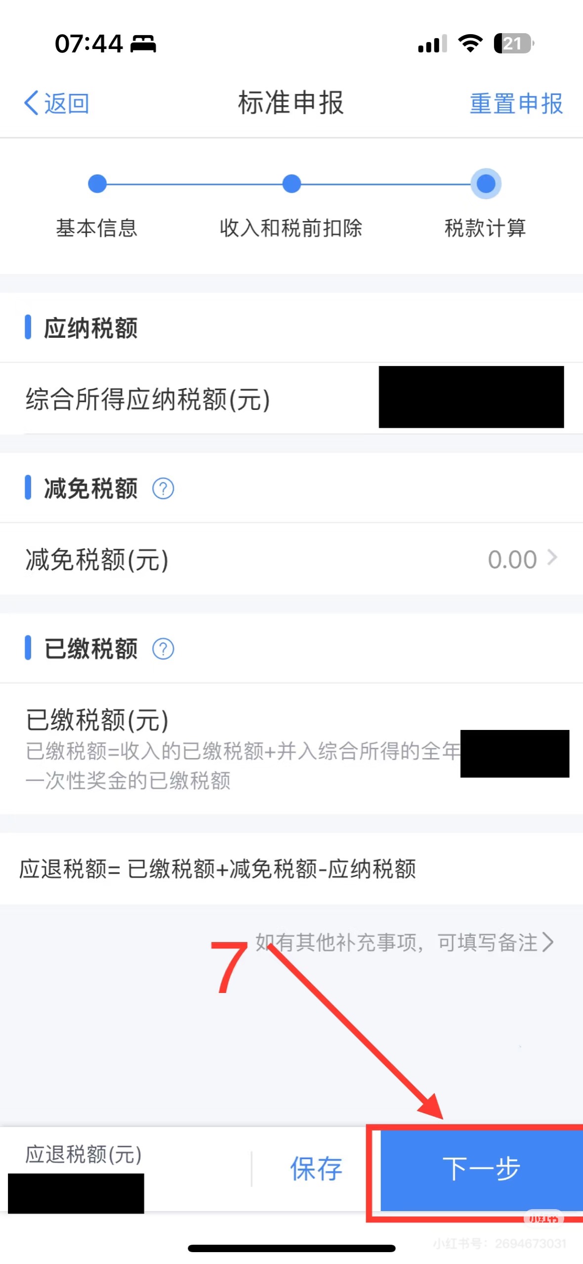 6)核对应退(补)税额,提交申报。
