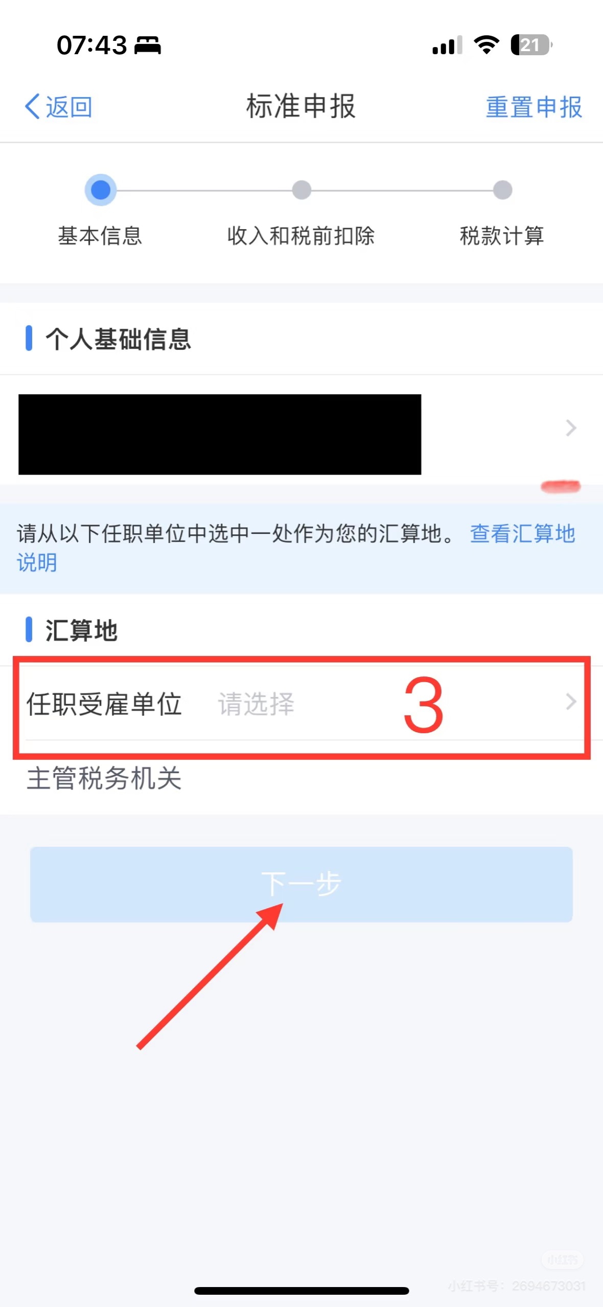 登录“个人所得税”APP,点击【20XX综合所得年度汇算】,点击【开始申报】,选择申报年度,填报方式选择【我需要申报表预填服务】,点击【我已阅读并知晓】,进入申报界面,选择或确认【任职受雇单位】,可点击【查看收入纳税数据】查看收入纳税明细数据,确认个人基础信息、已缴税额无误后,点击【提交申报】即可完成申报。