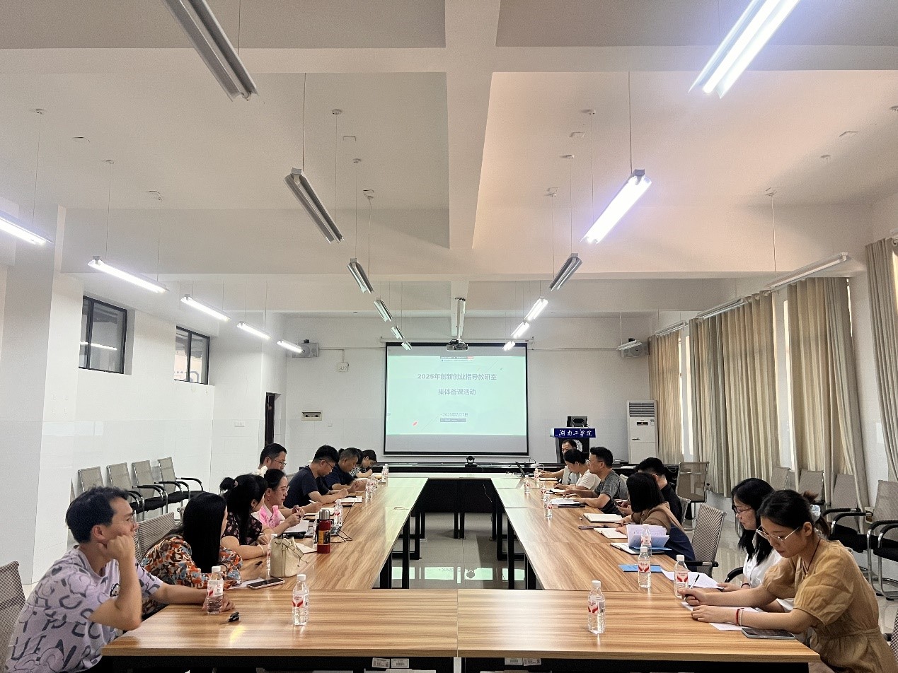为深入贯彻落实湖南省"七个一"创业政策,深化创新创业课程改革,提升教学质量,77日下午,创新创业指导教研室在数理楼102会议室举行2025年集体备课活动。活动采用线上线下同步模式,教研室主任阳彦主持,教研室27名专兼职教师全员参与,创新创业教育中心主任王小兵、副主任肖登峰出席会议并作指导。