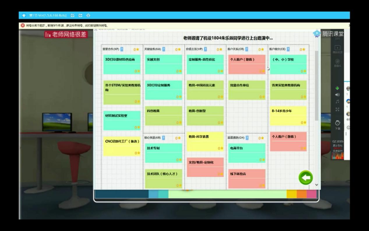 培训主要分为商业模式设计理论讲解和商业画布分享两个部分。肖总监深入浅出地介绍了相关知识,引导学生运用商业画布对项目进行优化。在画布分享过程中,肖总监还针对学生的创新创业项目进行了点评与实时互动。在点评过程中,各团队在培训中不断调整,理顺创业发展思路,优化团队架构,促进了各项目之间的学习交流,激发了同学们对创新创业知识的学习积极性,为项目后续发展打下了良好的基础。