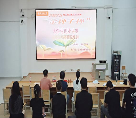 培训采用“项目路演+专家指导”的实战模式。入围省赛的项目团队进行模拟路演,从市场价值和商业模式、产品创新与技术突破、组织架构与团队能力、财务分析与融资规划、社会价值与持续发展等全方位展示项目亮点。吴衡老师针对项目路演PPT进行逐页剖析,从内容逻辑到视觉呈现,提出细致修改建议。通过设置抗压能力测试环节,模拟真实答辩中的刁钻提问场景,锤炼团队成员应变能力,传授答辩技巧,助力团队攻克答辩难关。邹莉老师则聚焦舞台礼仪与展示技巧,从仪态仪表、肢体语言到与评委的互动细节,进行一对一指导,帮助选手塑造专业自信的舞台形象。