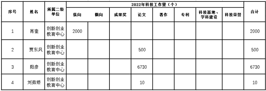根据科技与校企合作处《关于2021年、2022年专业技术人员科研绩效统计与核算的通知》要求,我中心已对全体教职工2022年度科技工作量进行了登记与核算,现将科技工作量统计结果公示如下。如有疑问,请在2023年1月2日前反映。联系人:贾东风,电话:13723840664。
