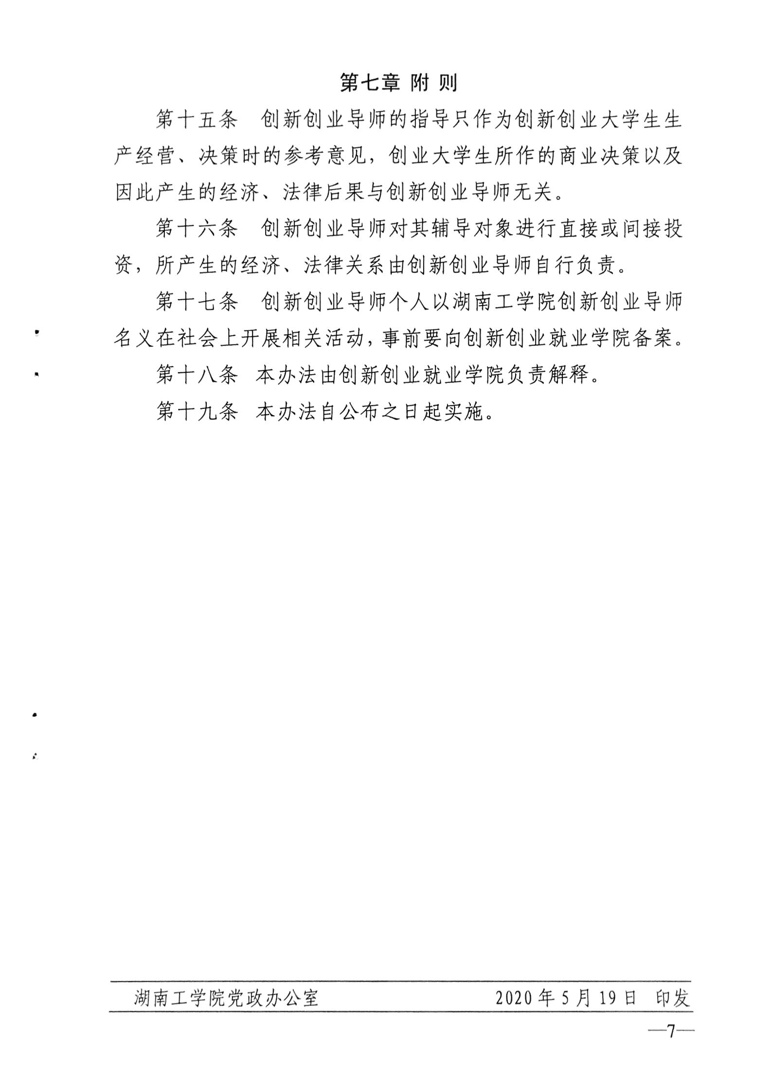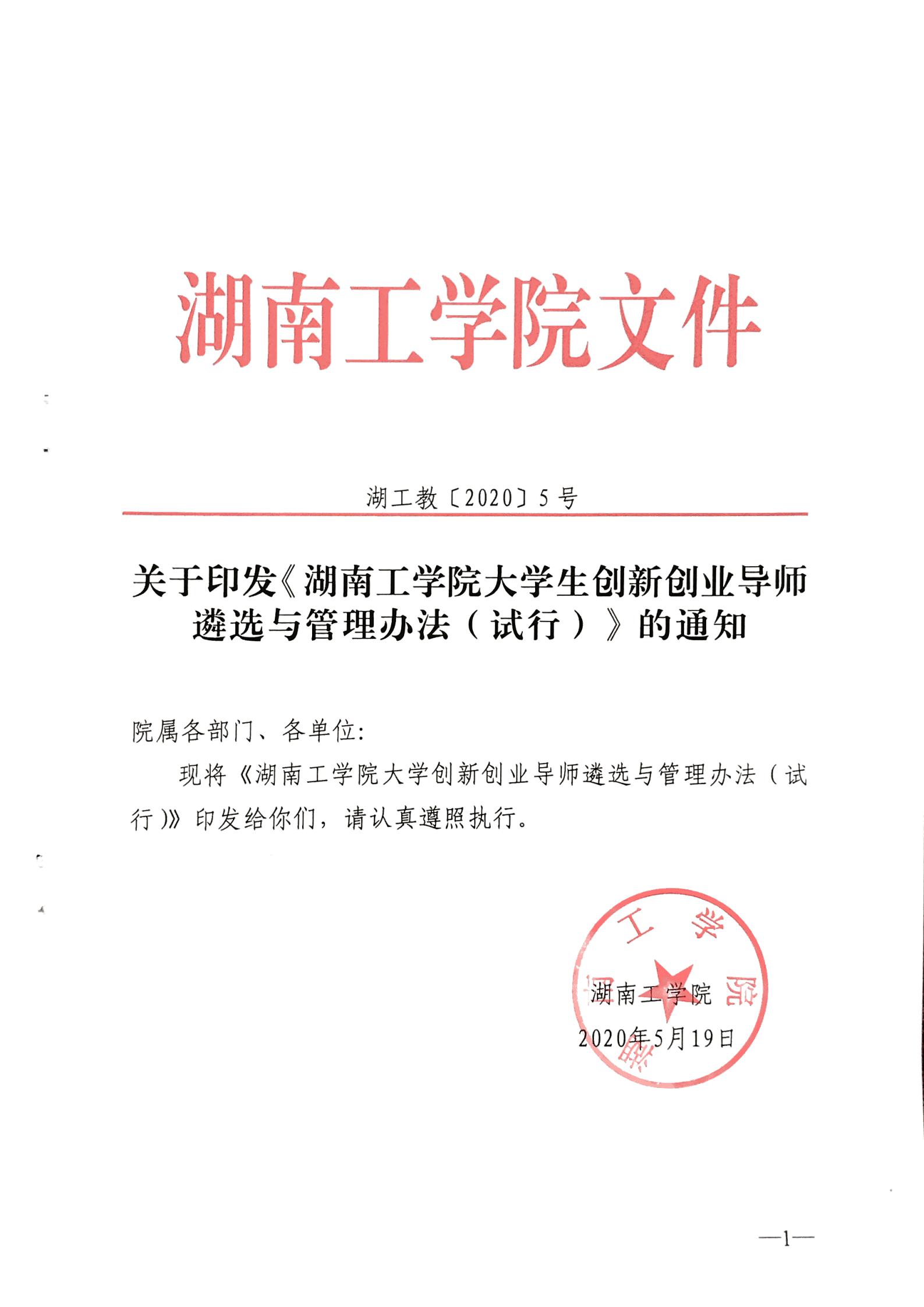 《英国上市公司官网365大学生创新创业导师遴选与管理办法(试行)》的通知 湖工教〔2020〕5号
