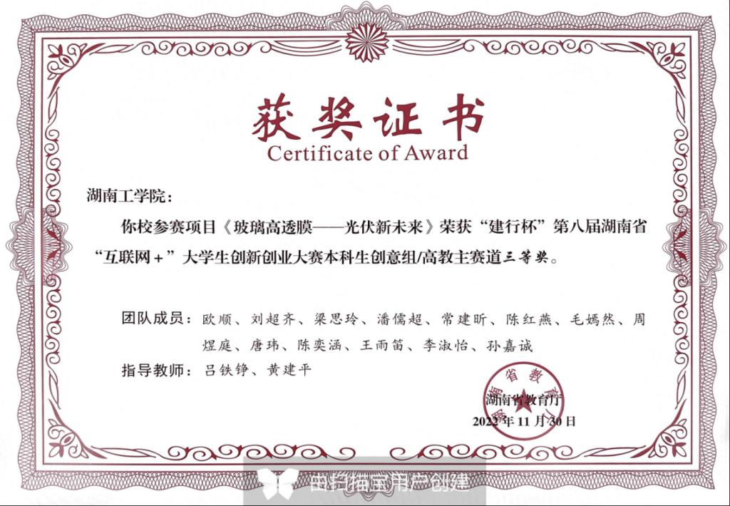 本团队在2019年成立,横跨4个年级,7个专业,学科交叉,优势互补,致力于寻找一种兼顾高透过,低成本的减反膜叠加工艺,历时三年时间,最终利用离子扩散重构玻璃表面取得了理想的效果。 团队利用用廉价的离子盐,以水为溶剂,涂覆在TEOS膜上,在高温环境中在玻璃表面进行离子扩散并重构表面,不仅保证其在各种环境中的稳定性,这样处理之后的玻璃可以提升透光率3%,同时保证低成本,每片玻璃处理价格仅为0.62元。 在今年的二月份,我们申请了自己的发明专利,同时,我们的产品取得了旗滨集团和索尔集团的产品测试证明。经测试,我们处理后的较之前转换效率提升高达0.75%,降低发电成本0.03元每度,降幅到达7%。