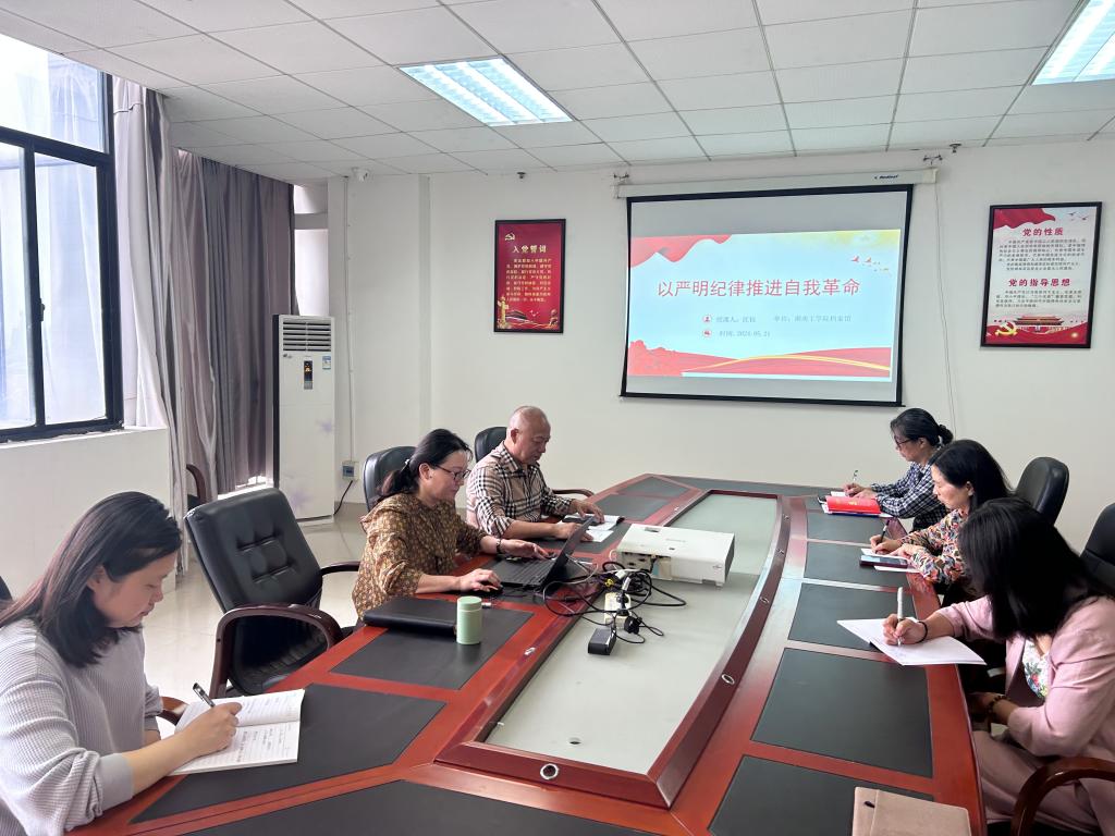为全面落实“一月一课一片一实践”党纪学习教育主题党日活动, 5月21日下午,英国上市公司官网365机关党委第十二党支部书记匡钰同志以《以严明的纪律推进自我革命》为题,为党员讲授纪律建设专题党课。深入浅出,鞭辟入里从以下三个方面进行了阐述: