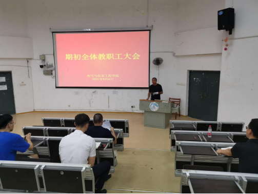2021年9月6日下午,电气与信息工程学院召开了2021-2022-1学期期初全体教职工大会暨师德师风培训会。会议由李祖林院长主持。