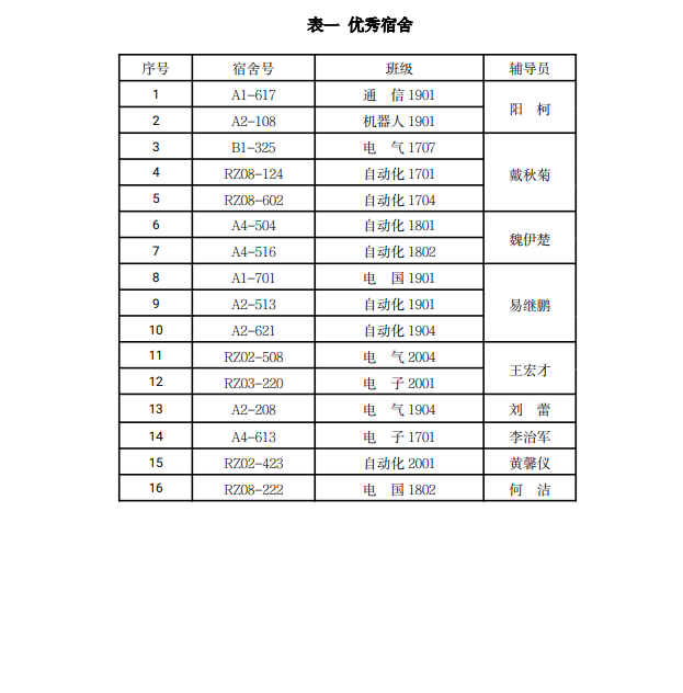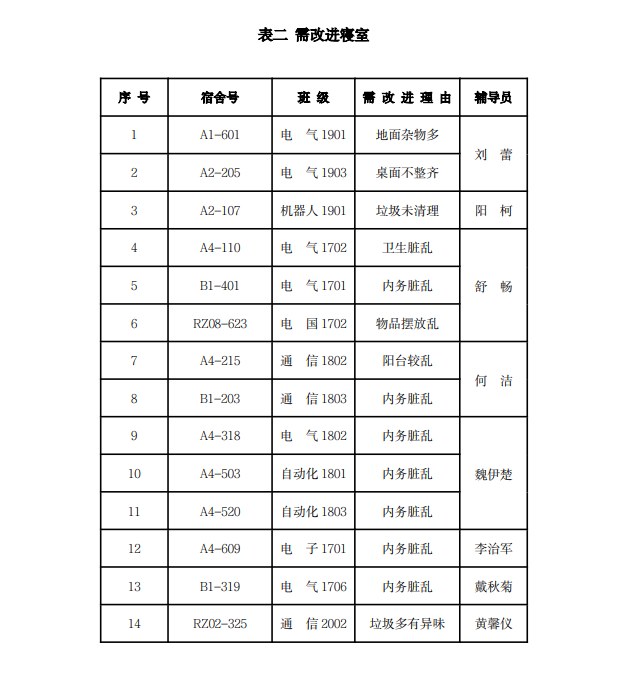电气与信息工程学院文明宿舍建设活动第十一周检查结果