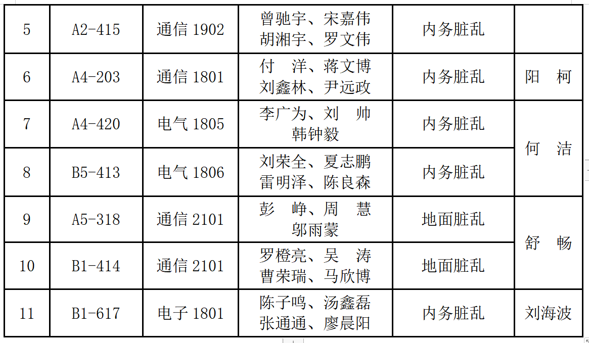 2021年下半年文明宿舍建设活动第十七周,我院“文明宿舍创建活动”工作组本着“公平、公正、公开”的原则,对我院全部宿舍进行了彻底检查。现将检查结果公布如下: